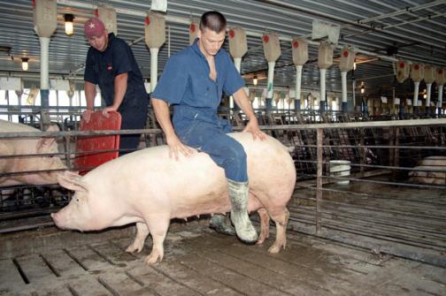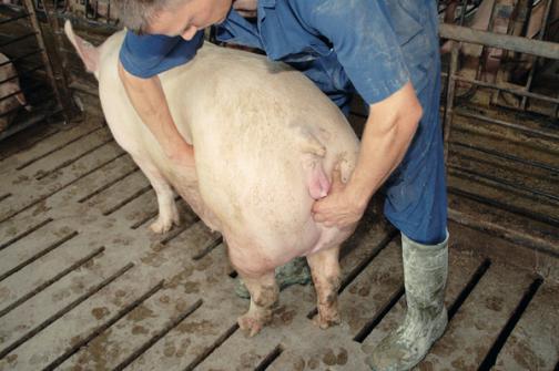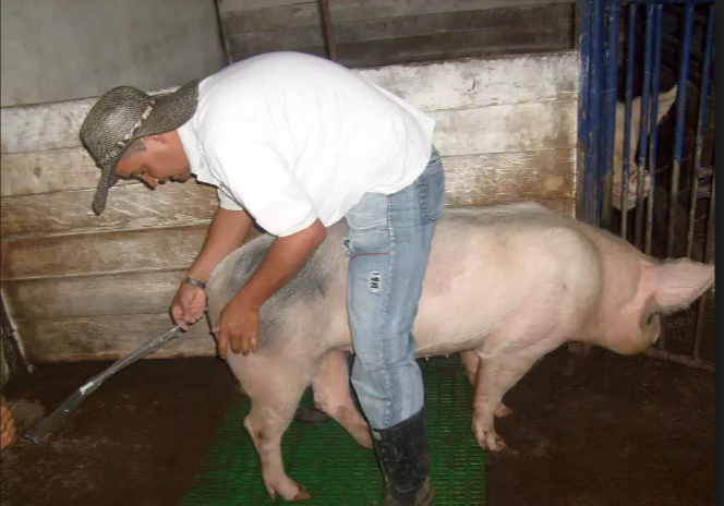 Para asegurar que la cerda se encuentre en el momento ideal del estro y período ovulatorio, se deben realizar una serie de presiones en el cuerpo del animal como si lo hiciese el semental.
